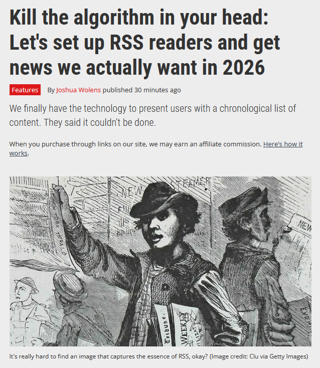 Το RSS είναι τέλειο! Βλέπεις νέα ποστ χωρίς να εμπλέκεται ο Αλγόριθμος! Το χρησιμοποιώ χρόνια! Το υποστηρίζει και η προσωπική μου ιστοσελίδα. Το 2026 καθώς πεθαίνουν τα social media και το reach, ξανανακαλύψτε τα RSS Readers και ζήστε τη μαγεία του παλιού, καλού ίντερνετ!