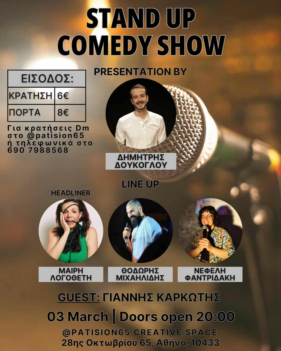 🎤 03/03 Παρουσιάζω την παράσταση stand up comedy στο Patision65! - 18/02/2026 Δυστυχώς η παράσταση ακυρώθηκε